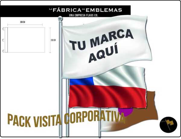 Banderas Corporativa/ Instituconal y Chilena de 200 x 300 cm en tela outdoor estampada full color y aplicada en bordado, triple costura perimetral, refuerxo en puntas y cinta lateral con argollas de acero cromado